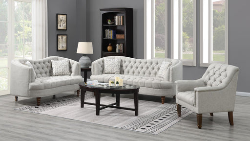 Sweeping lines and timeless details come together in this transitional twin daybed and trundle set. Wrapped in a soft fabric that coordinates with all sorts of color palettes, this daybed and trundle combo lends traditional elements such as a button-tufted back and sides. Thin sloped sides and a camelback offer a graceful design and feminine charm to compact rooms where additional sleeping arrangements come in handy. Tucked beneath the main frame is a hidden trundle set, easily retrievable and concealed by a smooth padded panel. Black legs elevate the trundle bed ever so slightly, allowing finished floors and colorful rugs to shine through. Key Features: • A transitional camel back with button tufted detailing, creates a cozy focal point for any guest room or smaller sized area • Functional convenient pull out trundle for an extra sleep space when needed • Upholstered in a versatile grey fabric • Constructed with poplar and MDF • Slat kits included