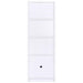 Put finishing touches on a charming media center in your living room with this tower bookcase. Perfect to flank your TV stand, it adds easy storage and display space. Its mix of cabinet and open shelving is versatile and stylish, with three shelves, two of them adjustable, on top of a one-door cabinet with one adjustable shelf. Trim details add subtle character and freshness to the overall look. A neutral finish complements surrounding decor and offers stylish appeal in your living room.